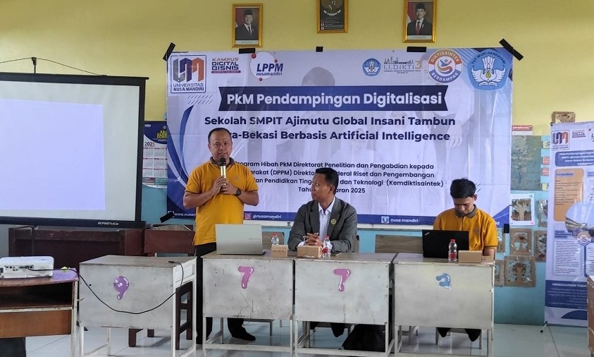 Bekasi–Universitas Nusa Mandiri (UNM) sebagai Kampus Digital Bisnis, berhasil melaksanakan program Pendampingan Digitalisasi Sekolah Berbasis Artificial Intelligence di SMPIT Ajimutu Global Insani, Tambun Utara, Bekasi. Program ini merupakan bagian dari Program Hibah Pengabdian Kepada Masyarakat (PKM) yang didanai oleh DPPM Kementerian Pendidikan, Kebudayaan, Riset, dan Teknologi (Kemendikbudristek) Tahun Anggaran 2025.