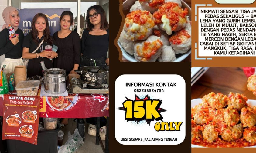 Salah satu peserta, Clarissa Berlianty dan tim, mahasiswi Program Studi Manajemen Bisnis semester 4, menghadirkan produk kuliner Bakso Lehot, Bakso Leha dan Bakso Kriwil yang menyasar selera generasi muda.