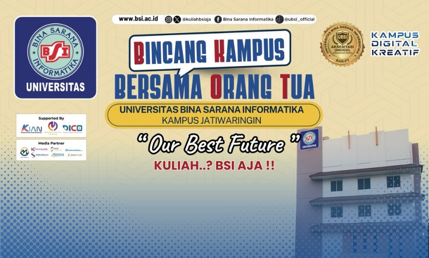 Jakarta – Dalam upaya mencetak lulusan yang tak hanya unggul secara akademik, namun juga siap bersaing di dunia kerja, Universitas Bina Sarana Informatika (UBSI) kampus Jatiwaringin akan menggelar kegiatan Bincang Kampus Bersama Orang Tua (BKOT) pada Sabtu, 5 Juli 2025 mendatang.