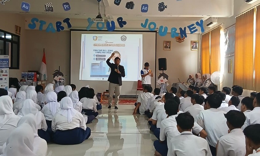 Setiaji, Kepala Kampus Cyber University, hadir sebagai narasumber utama dan menyampaikan pentingnya mengenali minat serta bakat sejak dini, terutama bagi siswa yang memiliki ketertarikan pada dunia animasi atau desain komunikasi visual (DKV). Ia menekankan bahwa pelajar SMK memiliki peluang besar untuk beradaptasi dengan kebutuhan industri modern berbasis teknologi dan fintech.