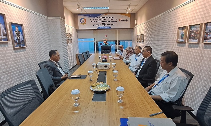 Jakarta – Cyber University bersama PT Prima Yasa Travela (Privela) telah menggelar rapat evaluasi kolaborasi strategis yang telah terjalin sejak Maret 2025. Pertemuan berlangsung pada Senin (4/8), di Kampus Cyber University, Jakarta Selatan, dan dihadiri oleh Direktur Utama Privela, Agus Supriadiyanto, serta jajaran pimpinan kampus yang terdiri dari Rektor, Wakil Rektor Bidang Akademik, Staf Rektor Bidang Non-Akademik, dan dua Ketua Program Studi.