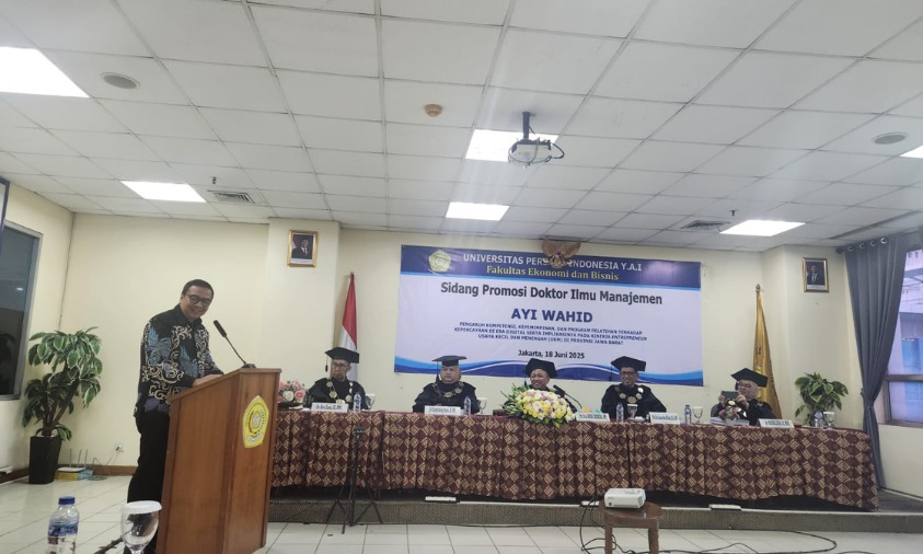 Jakarta – Cyber University, sebagai The First Fintech University in Indonesia, kembali mencetak prestasi gemilang dalam dunia akademik. Salah satu dosen terbaik dari Program Studi Bisnis Digital, Ayi Wahid, S.Si., MM., resmi meraih gelar Doktor Ilmu Manajemen setelah menjalani Sidang Terbuka Promosi Doktor pada Rabu (18/6), di Gedung Fakultas Ekonomi dan Bisnis Universitas Persada Indonesia Y.A.I, Jakarta Pusat.