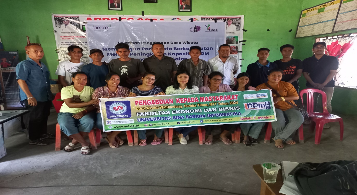 Dalam rangka mendukung pengembangan kapasitas masyarakat dalam sektor pariwisata serta mendorong peran aktif pemuda desa dalam pengelolaan potensi wisata lokal, Universitas Bina Sarana Informatika (UBSI) menyelenggarakan kegiatan Pengabdian Kepada Masyarakat (PKM) berupa Pelatihan Kepemanduan yang dilaksanakan pada tanggal 07 Juli 2024 bertempat di Balai Desa Watuhadang, Kecamatan Umalulu, Kabupaten Sumba Timur, Nusa Tenggara Timur. Kegiatan ini diikuti oleh 27 peserta yang terdiri dari perwakilan pemuda desa, pengelola wisata lokal, serta aparatur desa setempat.