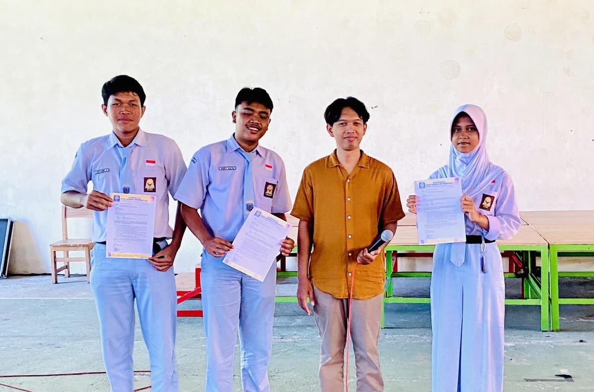 Di hadapan para siswa, Reyhan menceritakan perjalanannya hingga berhasil meraih beasiswa dan berprestasi di tingkat provinsi. Ia menekankan bahwa keberanian mencoba dan konsistensi menjadi kunci utama.