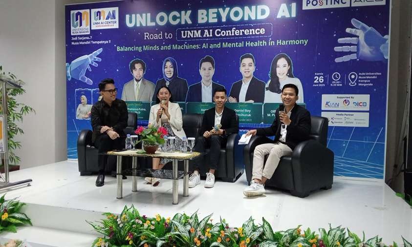 Depok – Universitas Nusa Mandiri (UNM) sebagai Kampus Digital Bisnis kembali menunjukkan komitmennya dalam menjawab tantangan zaman melalui penyelenggaraan Road To AI Conference bertajuk “Balancing Minds and Machines: AI and Mental Health in Harmony”, yang digelar pada Kamis 26 Juni 2025 di Aula UNM Kampus Margonda, Depok.