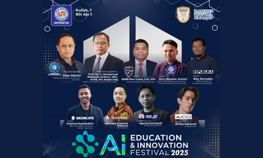 Jakarta – Dalam rangka mendorong percepatan transformasi digital di Indonesia, Universitas Bina Sarana Informatika (UBSI) akan menggelar Festival Edukasi & Inovasi AI 2025 pada Selasa, 2 Juli 2025, bertempat di Gedung Kampus UBSI kampus Kalimalang, Jakarta Timur. Kegiatan ini menjadi bagian dari komitmen UBSI sebagai Kampus Digital Kreatif dalam menjembatani dunia akademik dan industri teknologi.