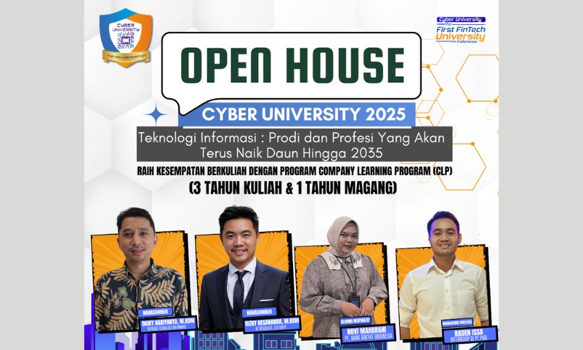 Jakarta – Cyber University, sebagai Kampus Fintech Pertama di Indonesia, kembali menunjukkan komitmennya dalam mencetak generasi digital unggul melalui gelaran Open House 2025 yang berlangsung secara daring via Zoom pada Rabu (18/6) besok.