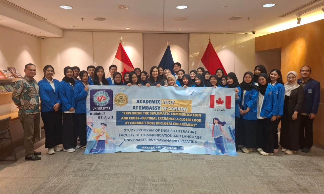 Jakarta — Membuka wawasan mahasiswa terhadap dunia internasional tidak cukup hanya lewat ruang kelas. Diperlukan pengalaman langsung agar mereka mampu memahami dinamika global secara nyata. Inilah yang menjadi fokus Universitas Bina Sarana Informatika (UBSI) sebagai Kampus Digital Kreatif dalam membekali mahasiswanya dengan kompetensi lintas negara. Salah satu upaya konkret dilakukan oleh Program Studi (Prodi) Sastra Inggris UBSI melalui kegiatan “Academic Visit at the Embassy of Canada” yang berlangsung di Kantor Kedutaan Kanada di Indonesia, Jakarta Selatan, pada Jumat (4/7) silam.