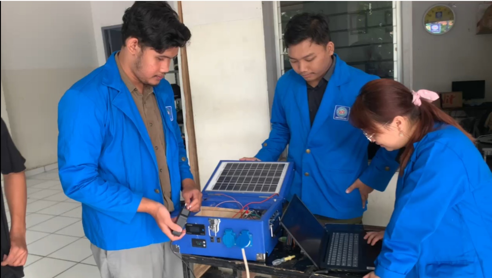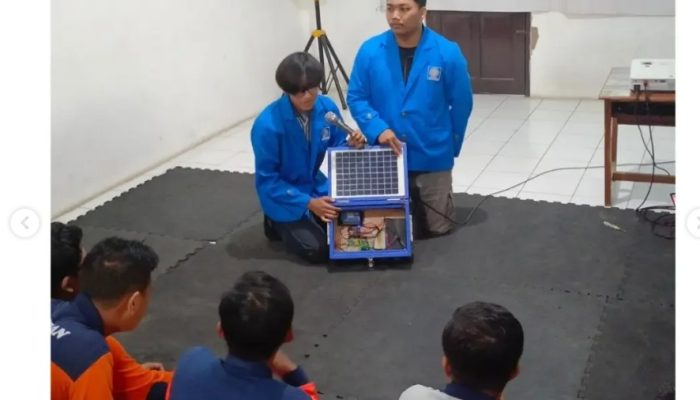 Tim PKM-KC Universitas BSI Tegal dengan karyanya yang berjudul ”PLTS PORTABLE, Alat pembangkit listrik tenaga surya berbasis sensor arus alternating current terintegrasi IoT (Internet of Things)