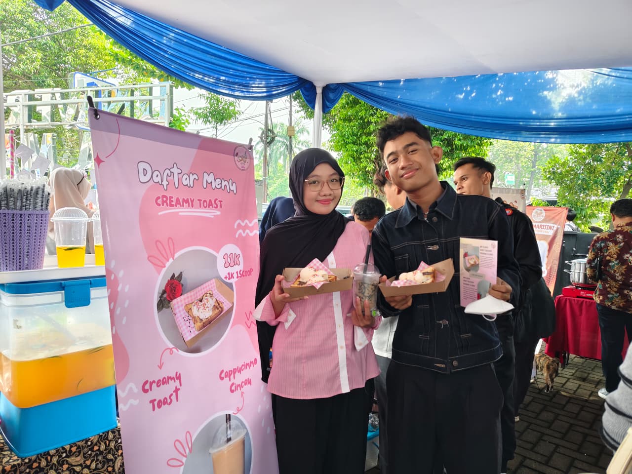 Salah satu mahasiswa yang turut berpartisipasi adalah Aldi, mahasiswa semester 3 program studi Manajemen, yang tampil percaya diri memperkenalkan produk bisnis timnya. Ia membuka booth makanan bernama Creamy Toast, yaitu roti bakar dengan topping es krim yang sedang digemari anak muda.