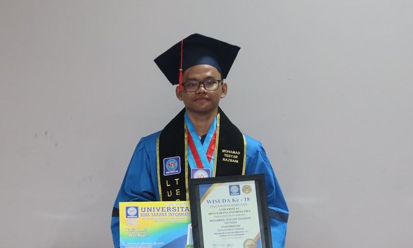 Bekasi – Mohamad Tesyar Razbani, lulusan Universitas Bina Sarana Informatika (UBSI) kampus Sukabumi, menjadi sorotan pada wisuda UBSI yang digelar di BSI Convention Center (BSI Convex), Kaliabang, Bekasi, Jawa Barat, pada Minggu (30/11) lalu. Di tengah keramaian prosesi, ia tampil sebagai wisudawan berprestasi yang telah meniti karier di bidang IT (Information Technology) sejak masih kuliah.
