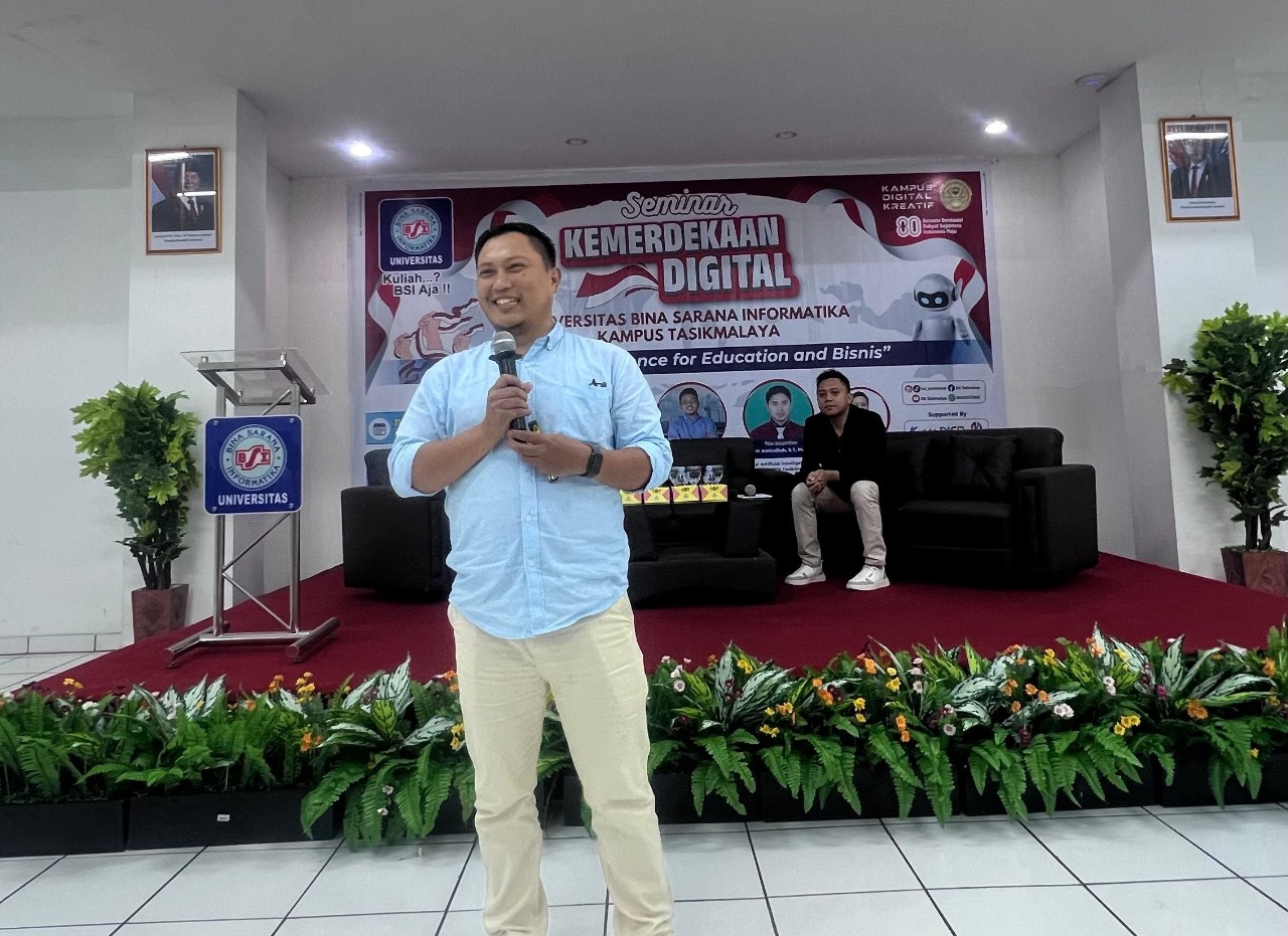 Tasikmalaya — Di tengah derasnya arus digitalisasi, isu kecerdasan buatan (Artificial Intelligence/AI) menjadi salah satu topik hangat yang terus diperbincangkan. Menyambut momentum Hari Kemerdekaan, Universitas Bina Sarana Informatika (UBSI) Kampus Tasikmalaya menghadirkan Seminar Kemerdekaan Digital pada Kamis (21/8) yang berlangsung meriah di aula kampus.