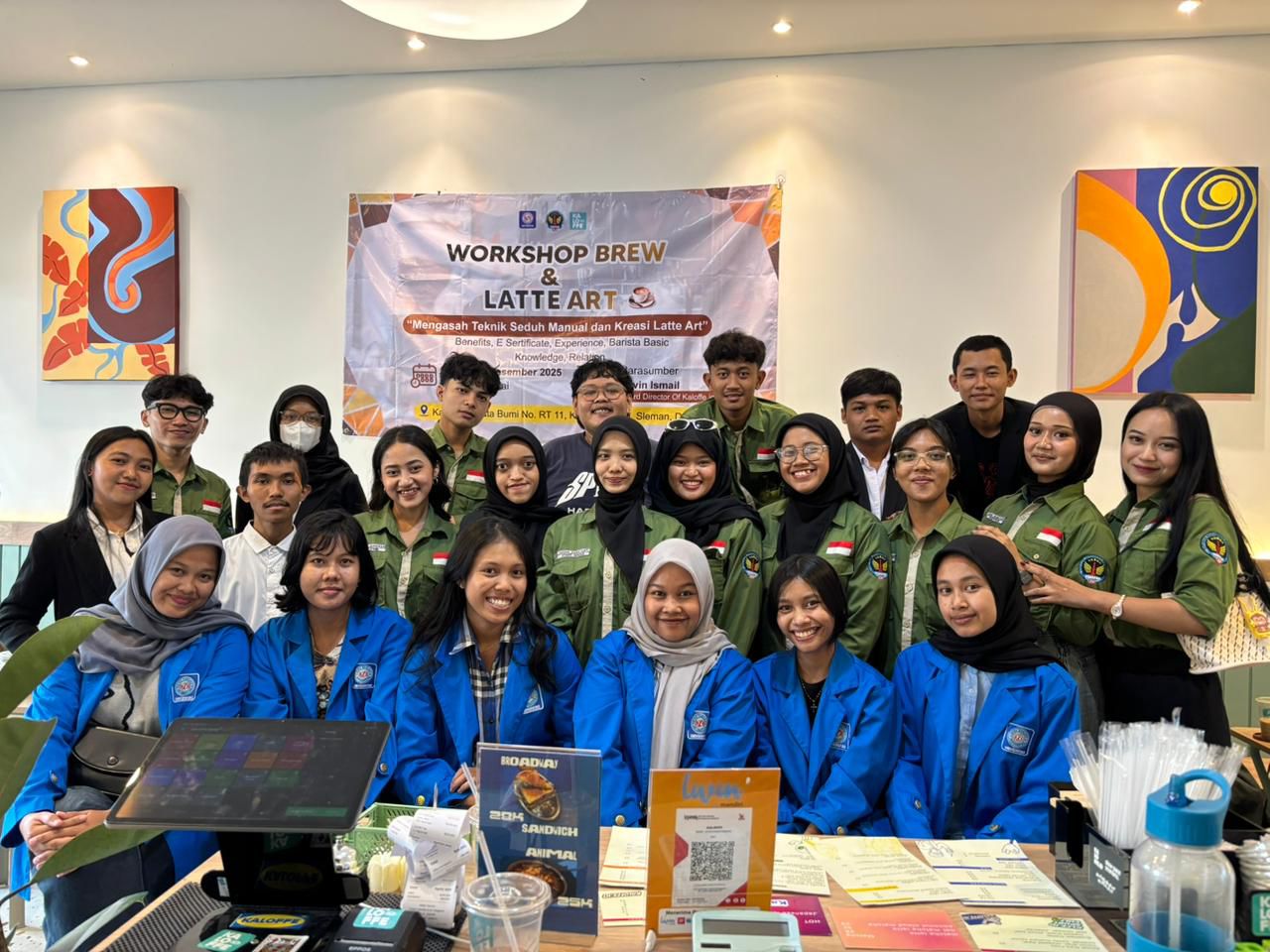 Dalam upaya mengembangkan potensi kreativitas dan jiwa kewirausahaan di kalangan generasi muda, sekelompok mahasiswa yang tergabung dalam himpunan mahasiswa pariwisata sukses menyelenggarakan kegiatan bertajuk “Workshop Brew & Latte Art”. Acara ini berlangsung dengan antusias di Kalofee pada 18 Desember 2025.