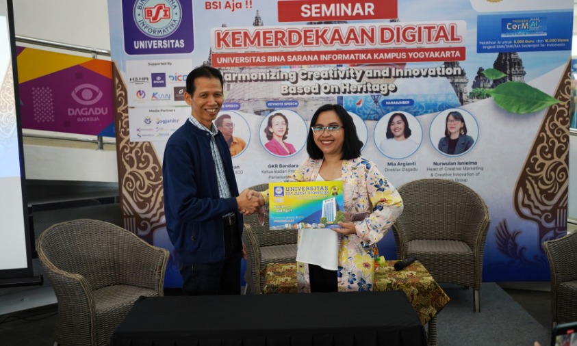 Yogyakarta – Universitas Bina Sarana Informatika (UBSI) terus menguatkan posisinya sebagai Kampus Digital Kreatif dengan menjalin kemitraan bersama brand fashion ikonik asal Yogyakarta, DAGADU. Kesepakatan kerja sama ini mencakup perancangan, produksi, penjualan, hingga pemasaran merchandise yang melibatkan kreativitas. Selain itu, UBSI juga membuka kesempatan magang di Dagadu Djokdja agar mahasiswa bisa merasakan pengalaman langsung bekerja di industri kreatif dan pemasaran.