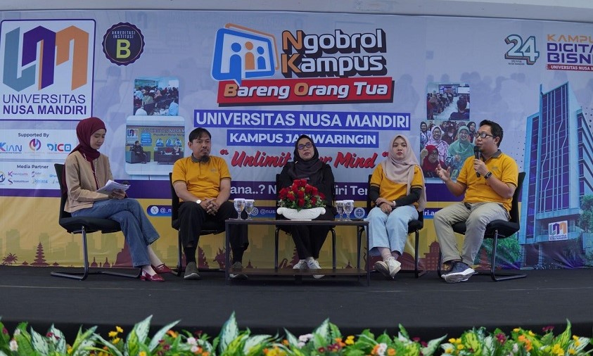 Jakarta – Suasana hangat dan penuh semangat terasa di Aula Universitas Nusa Mandiri (UNM) Kampus Jatiwaringin, pada Sabtu (5/7), saat ratusan orang tua mahasiswa baru hadir dalam kegiatan Ngobrol Kampus Bareng Orang Tua (NKBO). Kegiatan ini merupakan bagian dari komitmen UNM sebagai Kampus Digital Bisnis dalam membangun sinergi antara kampus, mahasiswa, dan orang tua, khususnya dalam menyiapkan generasi yang mandiri, kreatif, dan berdaya saing.