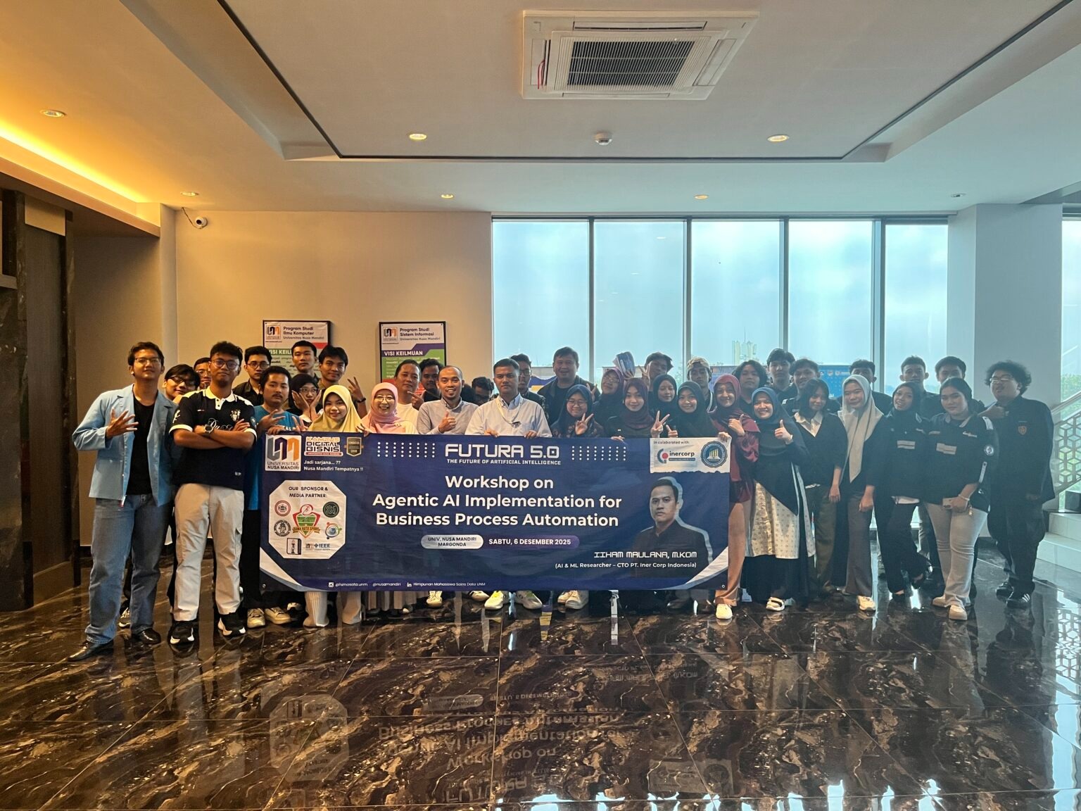 Depok – Himpunan Mahasiswa Sains Data (HIMASATA) Universitas Nusa Mandiri (UNM) yang dikenal sebagai Kampus Digital Bisnis, sukses menyelenggarakan workshop bertajuk “The Future of Artificial Intelligence: Agentic AI Implementation for Business Process Automation” pada Sabtu (6/12) di UNM kampus Margonda, Depok, Jawa Barat.